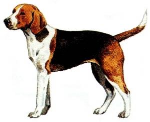 | Brust: | Sie soll tief sein, um den Lungen genügend Raum zu bieten; sie ist schmaler im Verhältnis zur Tiefe als beim englischen Foxhound. Für einen 58 cm (23 ins) grossen Hund gilt ein Brustumfang von 71 cm (28 ins) als gut. |