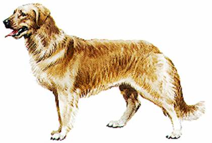 HAAR : Das kräftige Langhaar ist leicht gewellt und anliegend, mit wenig Unterwolle. Es ist länger an der Brust, am Bauch, der Rückseite der Vorderläufe, an der Rückseite der Oberschenkel und der Rute. Am Kopf, an der Vorderseite der Vorderläufe und der Vorderseite der Hinterläufe ist das Haar kurz. Das Haarkleid ist geschlossen.